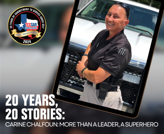 TEXSAR: 20 Years, 20 Stories, is a series of people-centric stories that celebrate the history of TEXSAR’s heroics and humanity as its volunteers continue their mission of ‘Texans helping Texans’ with Service above Self. The sequence of stories and profiles will come together in 2024 and 2025, celebrating the nonprofit’s 20th anniversary. To read more, click here.