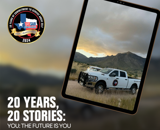 TEXSAR: 20 Years, 20 Stories, is a series of people-centric stories that celebrate the history of TEXSAR’s heroics and humanity as its volunteers continue their mission of ‘Texans helping Texans’ with Service above Self. The sequence of stories and profiles will come together in 2024 and 2025, celebrating the nonprofit’s 20th anniversary. To read more, click here.