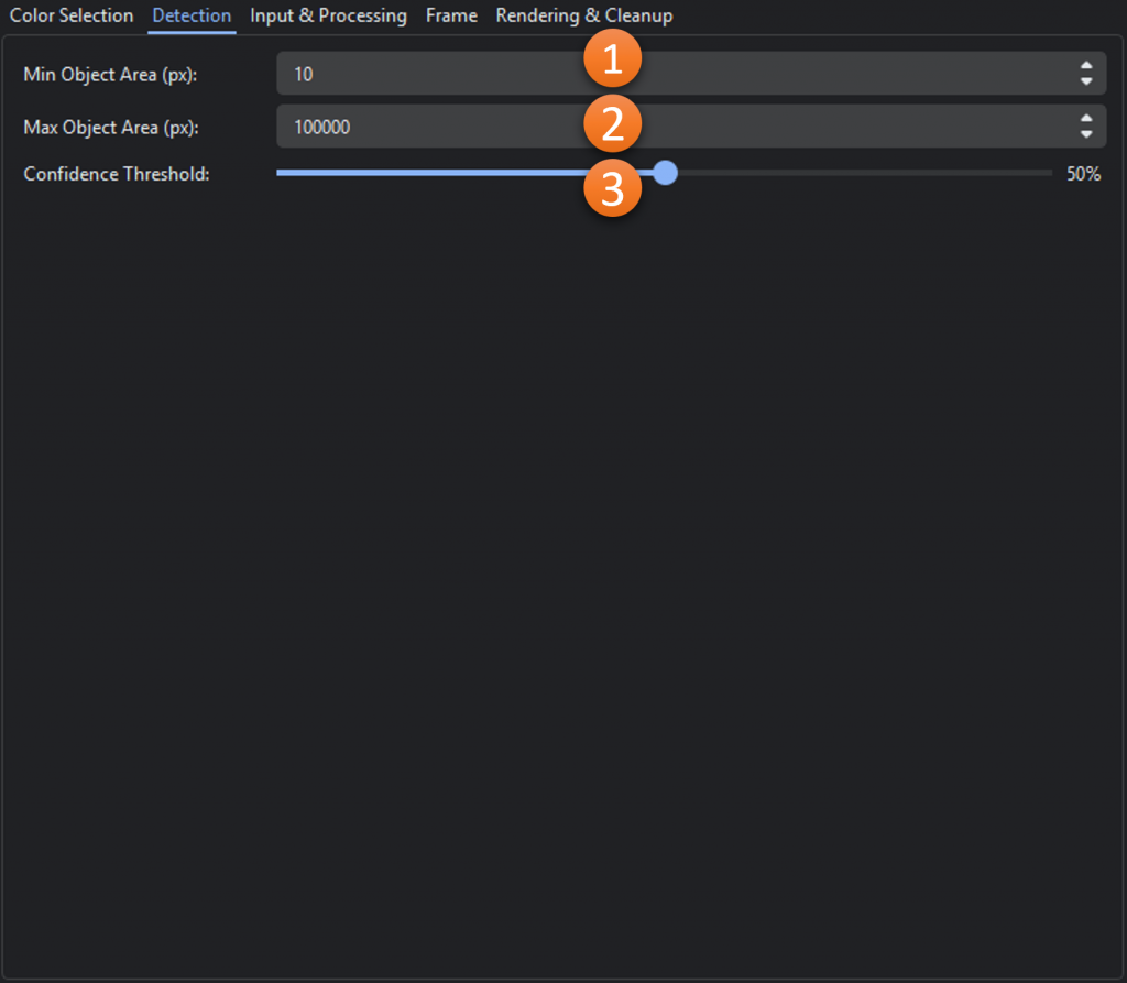 - Min/Max Object Area(px): The minimum and maximum areas allowed for areas of interest