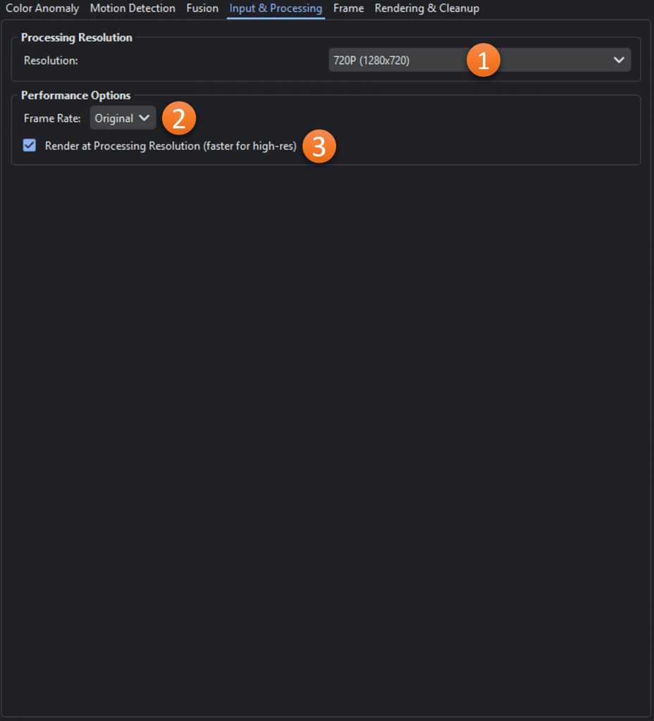 - Processing Resolution: Scaled resolution at which images will be processed. Reducing resolution can make processing faster but can result in fewer detections.