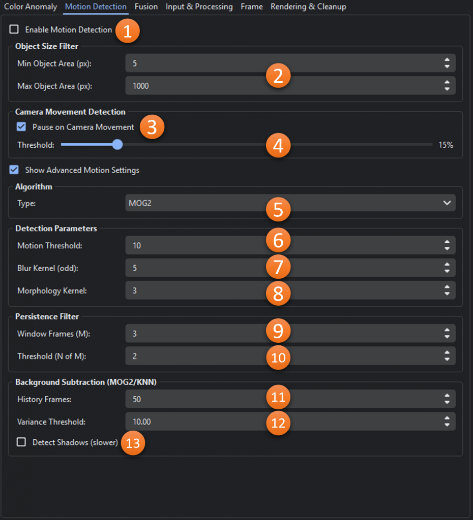 - Enable Motion Detection: Toggles whether motion-based anomalies should be identified.
