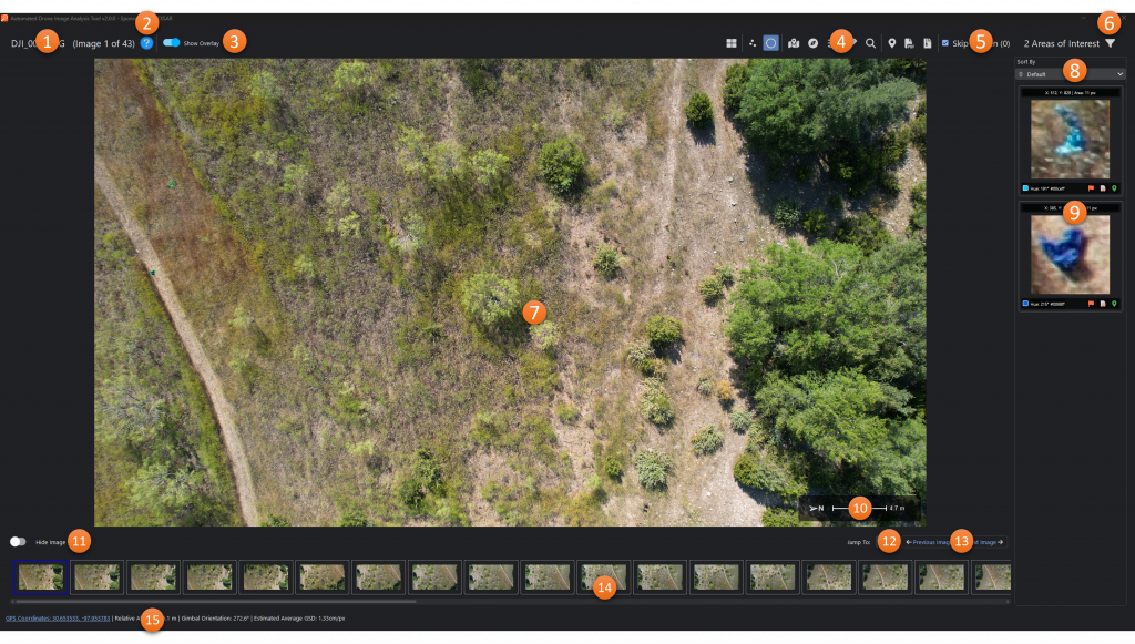 - File Name and Image Count/Index: The name of the file currently being viewed along with the index of the current image and the total number of images with areas of interest.