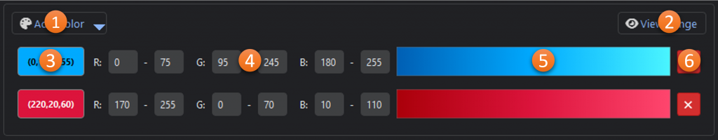 - View Range*: Shows the selected and unselected color range(s) in 3 color maps.